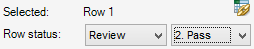 In the ACL Add-In panel, from the Row status list, select the appropriate status column and then from the adjacent list, select the status.