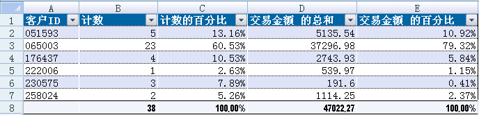 在您的结果中,您可以看到每个客户的交易总数和每个客户的交易总金额。