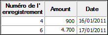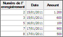 Les exemples suivants illustrent des résultats valides et non valides selon que l'ordre de test respecte ou non l'ordre de tri imbriqué et le sens des valeurs dans les champs clés Date et Montant.