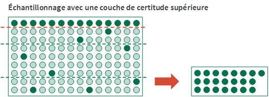 La portion de la population qui n'est pas capturée par une couche de certitude est échantillonnée à l'aide de la méthode de sélection aléatoire.