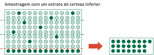 A parcela da população não capturada por um estrato de certeza é amostrada usando o método de seleção aleatória.