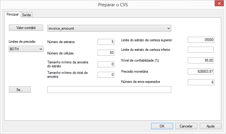 Não manipule os valores de entrada em um ambiente de produção apenas para reduzir o tamanho da amostra. Os valores de entrada devem ser baseados em sua capacidade de julgamento profissional sobre o que é mais adequado para os dados amostrados e o objetivo da auditoria.