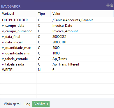 WRITE1 é uma variável do sistema. Nesta situação atual, o valor representa o número de registros na tabela de saída (v_tabela_saida). Para obter mais informações, consulte Variáveis de sistema criadas por comandos do Analytics.