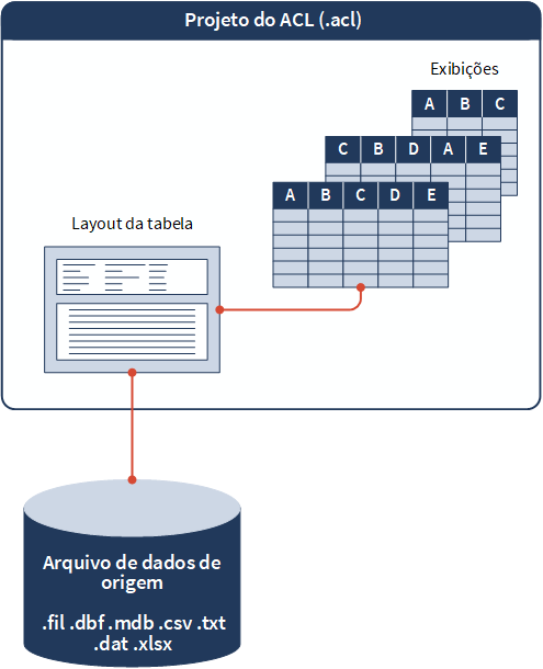 O Analytics exige o layout da tabela para poder entender os dados brutos. O layout da tabela também especifica o nome do arquivo de dados de origem. O layout da tabela faz parte do arquivo de projeto do Analytics (.acl).