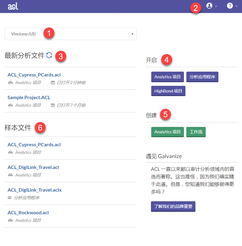 ACL for Windows 主屏幕概览