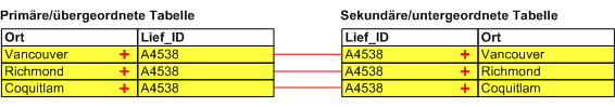 Beispiel 1: Zwei Schlüsselfelder in der sekundären oder untergeordneten Tabelle
