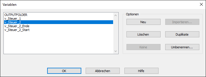 Aktueller Zustand der Projektvariablen Geben Sie in die Befehlszeile DISPLAY VARIABLES ein, und drücken Sie die Eingabetaste.