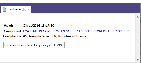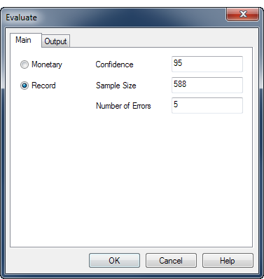 - Select Sampling > Record/Monetary Unit Sampling > Evaluate.
