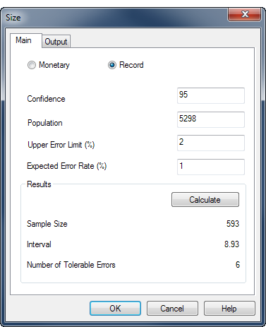 - Select Sampling > Record/Monetary Unit Sampling > Calculate Size.