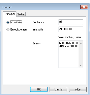 - Sélectionnez Échantillonnage > Échantillonnage par enregistrement/unité monétaire > Évaluer.