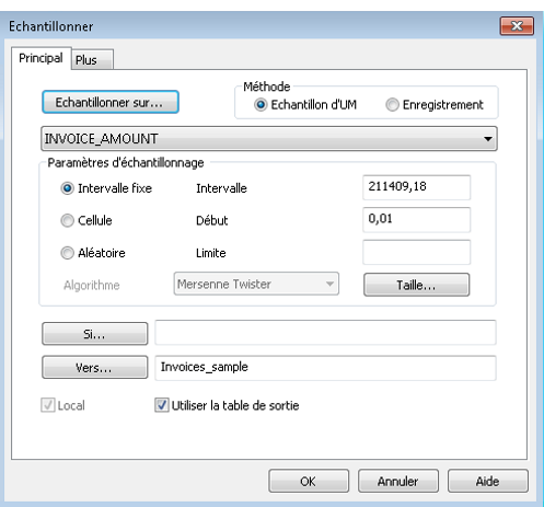 | Echantillonner sur | Le champ montant_facture contient les valeurs comptables que vous êtes en train d'auditer. |