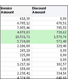 | Dans la vue de la table, le montant de la réduction apparaît maintenant avec chaque enregistrement. |