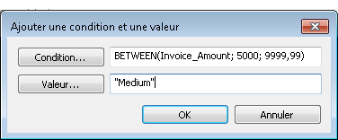 Les valeurs conditionnelles sont définies comme des paires condition-valeurs. Si un enregistrement remplit la Condition, le champ calculé utilise la Valeur spécifiée.
