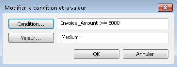 Dans l'exemple précédent Invoice size (Taille des factures), des tests sont effectués sur les montants des factures par rapport aux conditions dans cet ordre :