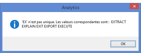 - EX n'identifie pas de manière unique la commande EXTRACT et génère un message d'erreur.