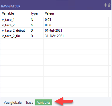 Utilisation de l'onglet Variables
