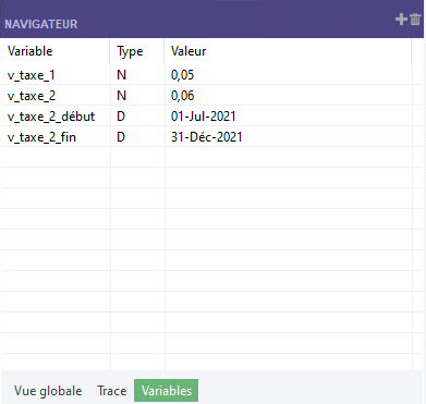 l'onglet Variables