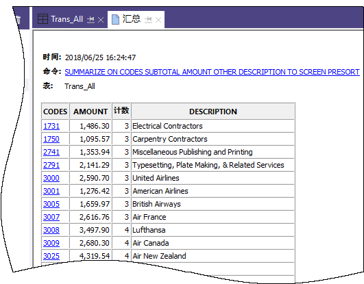SUMMARIZE ON CODES SUBTOTAL AMOUNT OTHER DESCRIPTION TO "Trans_All_Grouped_s.FIL" OPEN PRESORT STATISTICS