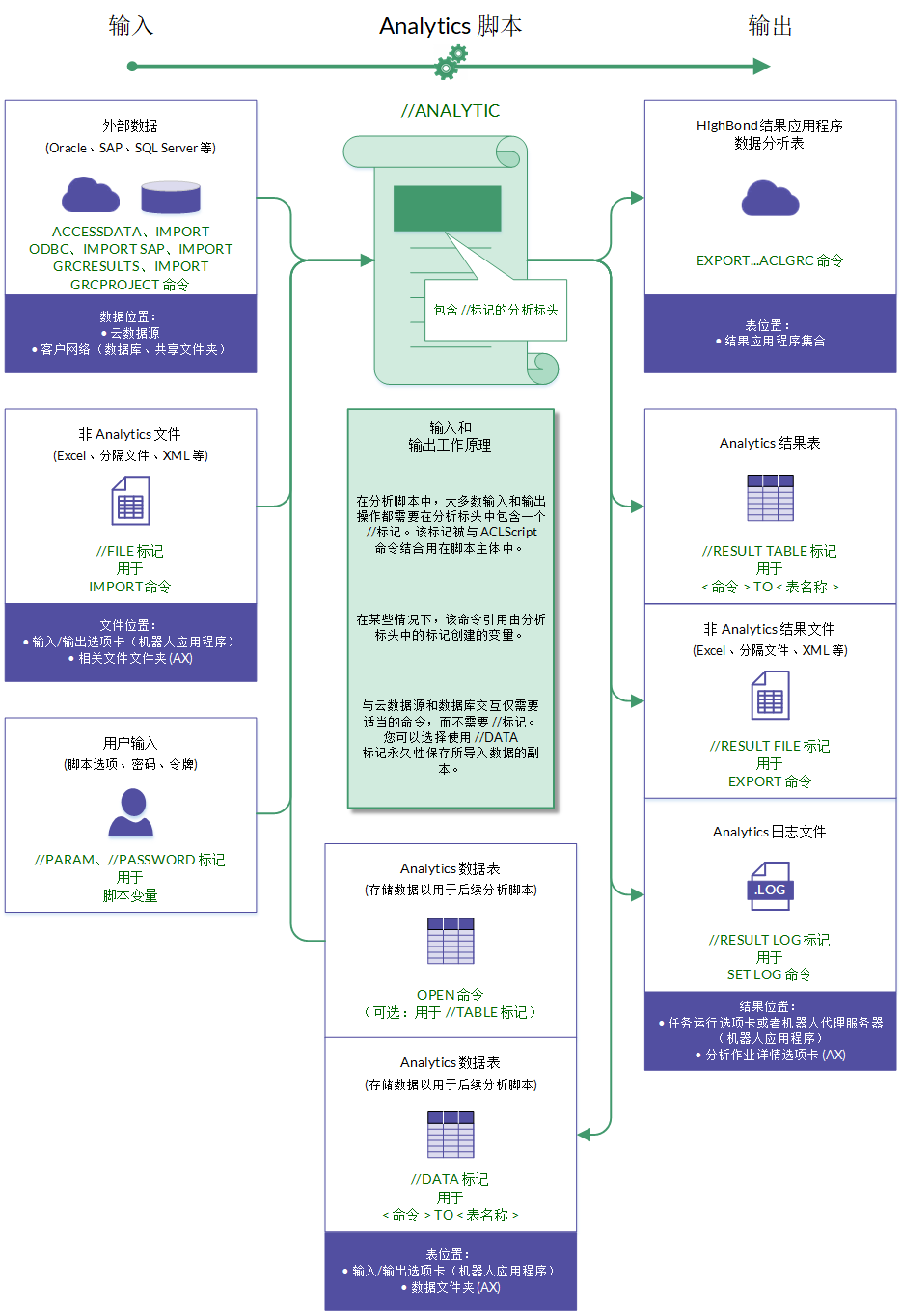 下图说明了分析脚本的所有可能的输入和输出。每个输入或者输出都显示了: