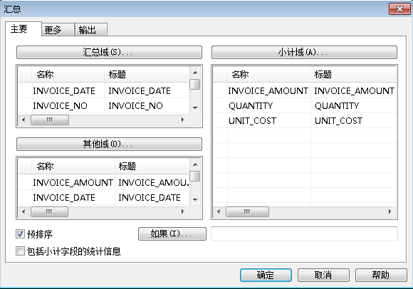 指定一个或多个数值域,以便在操作过程中选择性地进行小计 |