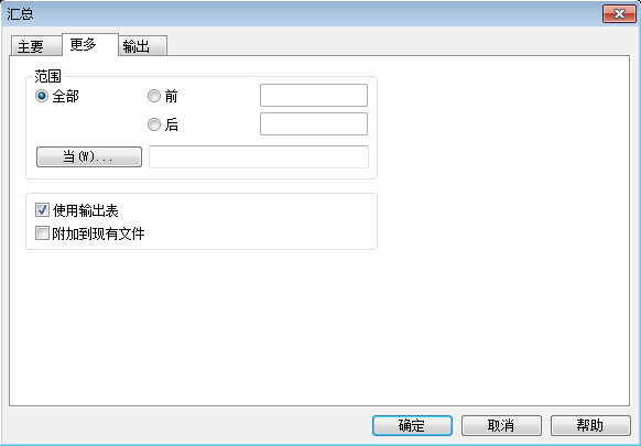 当您从主菜单选择 Analytics 命令(如“汇总”或“重复”)时,将打开一个命令对话框。这些对话框包含选项以使您可以指定:
