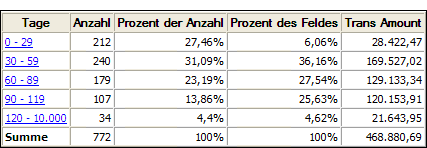 - Altersstruktur an Rechnungsdatum in einer Forderungstabelle