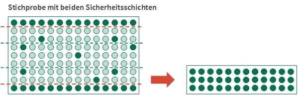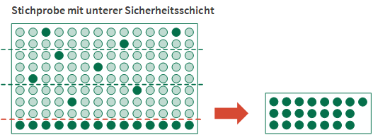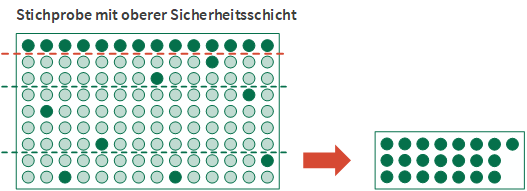 Aus der restlichen Grundgesamtheit, die durch eine Sicherheitsschicht nicht erfasst wurde, wird mit der zufälligen Auswahlmethode eine Stichprobe gezogen.