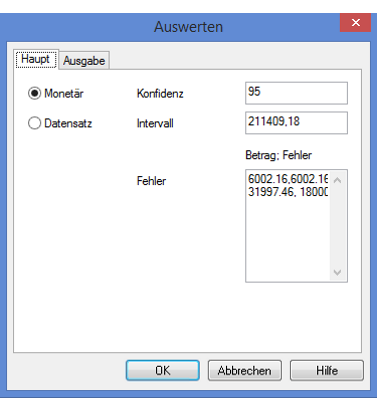 - Wählen Sie Stichprobe > Datensatz-/Währungseinheitsstichprobe > Auswerten.