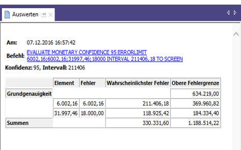 | Erwartete Fehler | Sie erwarten, dass der Gesamtbetrag der Fehlerbeträge innerhalb des Kontos $464.001,99 (1%) beträgt. |