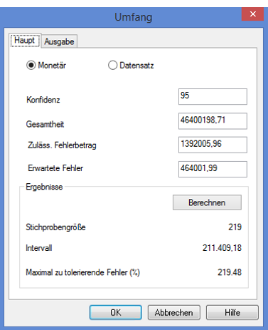 - Wählen Sie Stichprobe > Datensatz-/Währungseinheitsstichprobe > Umfang berechnen.