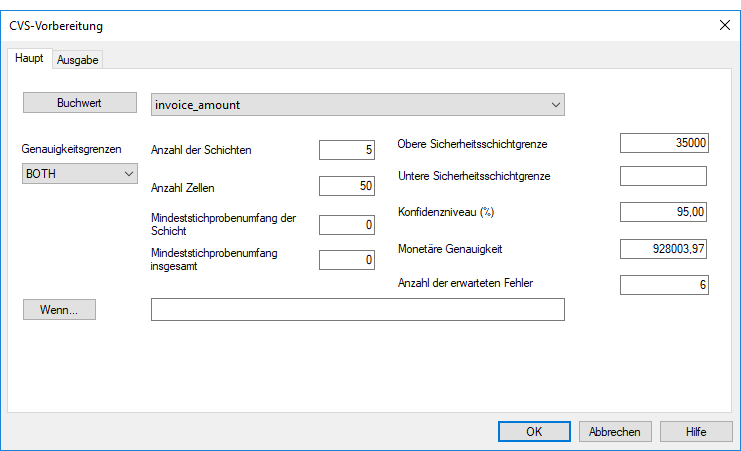 Die Verwendung eines zweiseitigen Bereichs während der Phase der CVS-Auswertung ist der vorsichtigere Ansatz. Mit einem zweiseitigen Bereich können Sie unabhängig von der Richtung des insgesamt vorhandenen Fehlerbetrags einschätzen, ob ein Konto angemessen ausgewiesen ist.