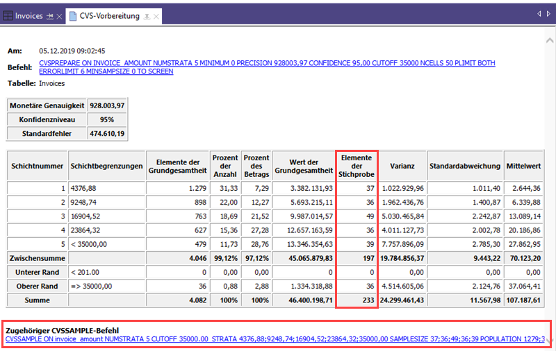 Zur Vereinfachung können Sie den CVSSAMPLE-Befehl speichern. Sie können ihn dann verwenden, sobald Sie die klassische Stichprobe von Variablenausprägungen vorbereitet haben.