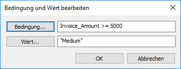 . - Im Dialogfeld Bedingung und Wert einfügen verfahren Sie wie folgt und klicken dann auf OK: