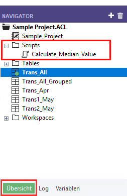Öffnen Sie Analytics und „Sample Project.ACL“