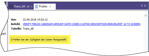 IF WRITE1=0 DIALOG (DIALOG TITLE "Benutzerdialog" WIDTH 490 HEIGHT 100 ) (BUTTONSET TITLE "&OK;&Abbrechen" AT 360 12 DEFAULT 1 ) (TEXT TITLE "Trans_Apr_s-Tabelle: 0 Datengültigkeitsfehler entdeckt" AT 12 28 )