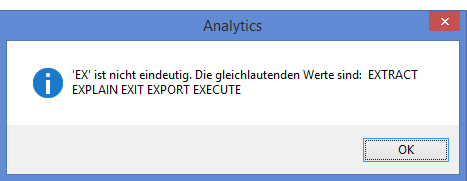 - EX identifiziert den Befehl EXTRACT nicht eindeutig und ergibt eine Fehlermeldung.