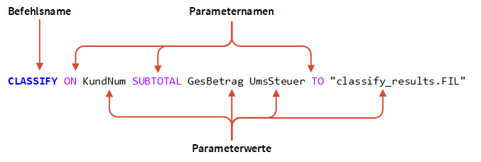 Das folgende Beispiel zeigt den CLASSIFY-Befehl mit den folgenden Parametern: