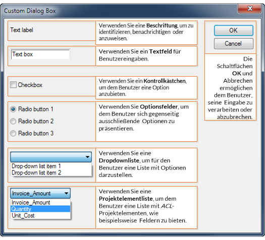 Benutzerdefiniertes Dialogfeld erstellen – allgemeine Schritte