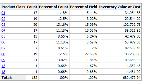 (the Inventory table in ACL DATA\Sample Data Files\Sample Project.ACL)
