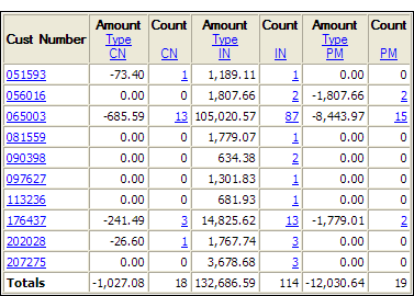 - cross-tabulating customer number and transaction type in an accounts receivable table