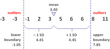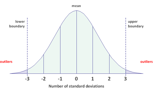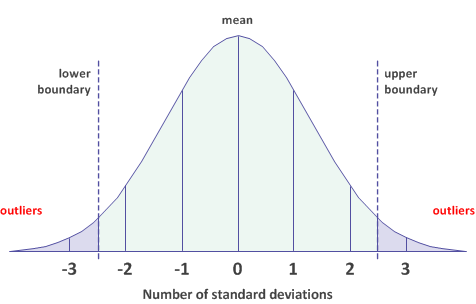 Outlier boundaries ±3 standard deviations from the mean