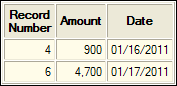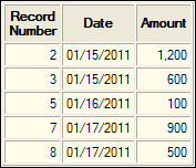 The examples below demonstrate results that are valid or invalid based on whether the testing order matches the nested sort order and the direction of the values in the Date and Amount key fields.
