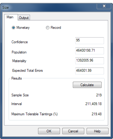 - Select Sampling > Record/Monetary Unit Sampling > Calculate Size.