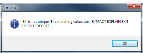 - EX does not uniquely identify the EXTRACT command and generates an error message.