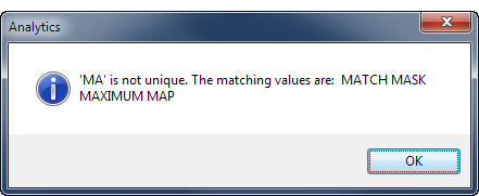 - MA does not uniquely identify the MAXIMUM function and generates an error message.