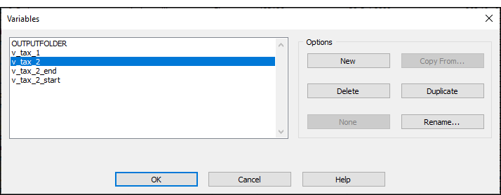DIALOG command Use the DIALOG command, and the associated Dialog Builder, to create a more advanced dialog box that interactively prompts users for one or more script input values. Each input value is stored in a named variable. Most of the input options use a character variable. In addition to the options provided by the ACCEPT command, the DIALOG command gives you additional options such as checkboxes, radio buttons, and dropdown lists. Also see Creating interactive scripts. |