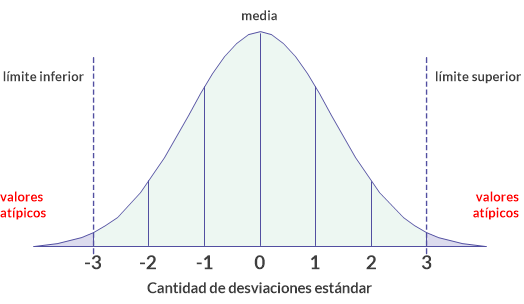 Límites de valores atípicos de ±3 desviaciones estándar respecto de la media