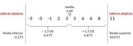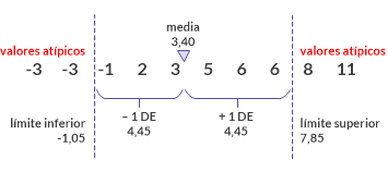 El promedio (media) de los números es 3,40. El promedio se usa para calcular la desviación estándar del conjunto: 4,45.
