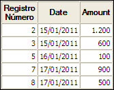Los siguientes ejemplos muestran resultados que son válidos y no válidos según si el orden de la prueba coincide con el orden de clasificación anidada y la dirección de los valores en los campos clave Fecha y Cantidad.