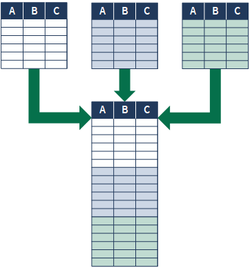 Al anexar tablas, se combinan los registros de dos o más tablas en una nueva tabla que contiene todos los registros de las tablas anexadas. Puede incluir todos los campos de las tablas anexadas o únicamente los campos comunes.